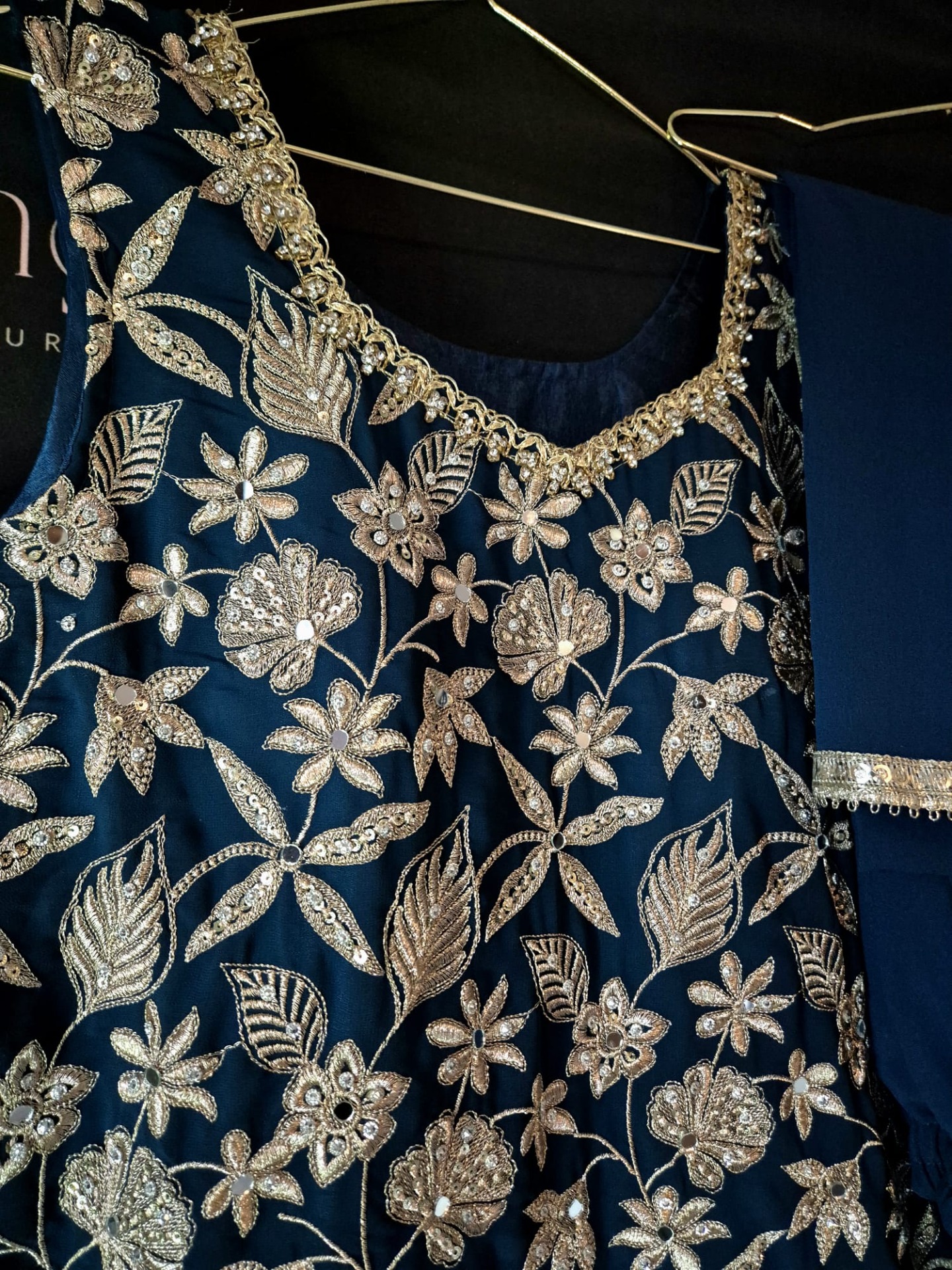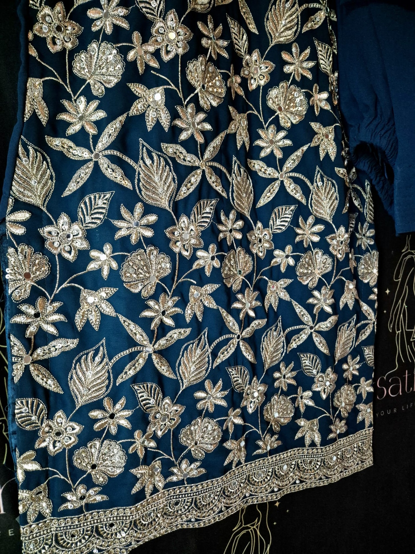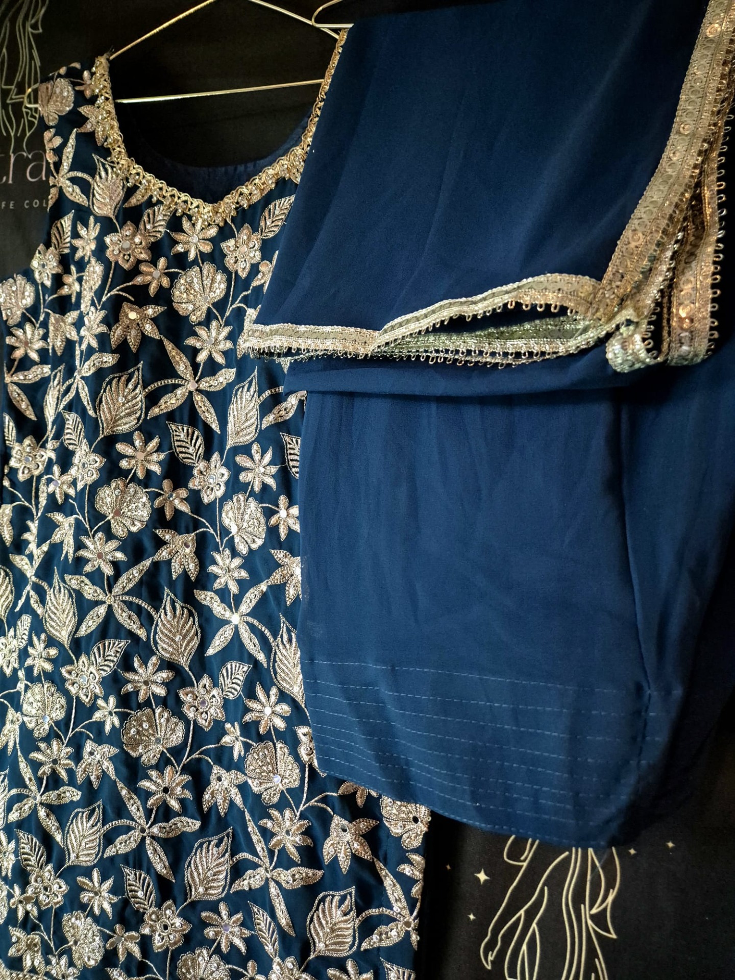 Embroidery: Rich silver-toned embroidery featuring intricate floral and leaf motifs across the top. Finished with a detailed decorative hem and elegant borders on the dupatta, creating a luxurious and festive look