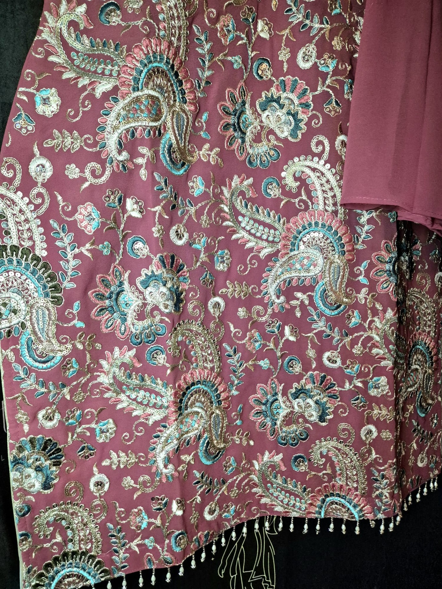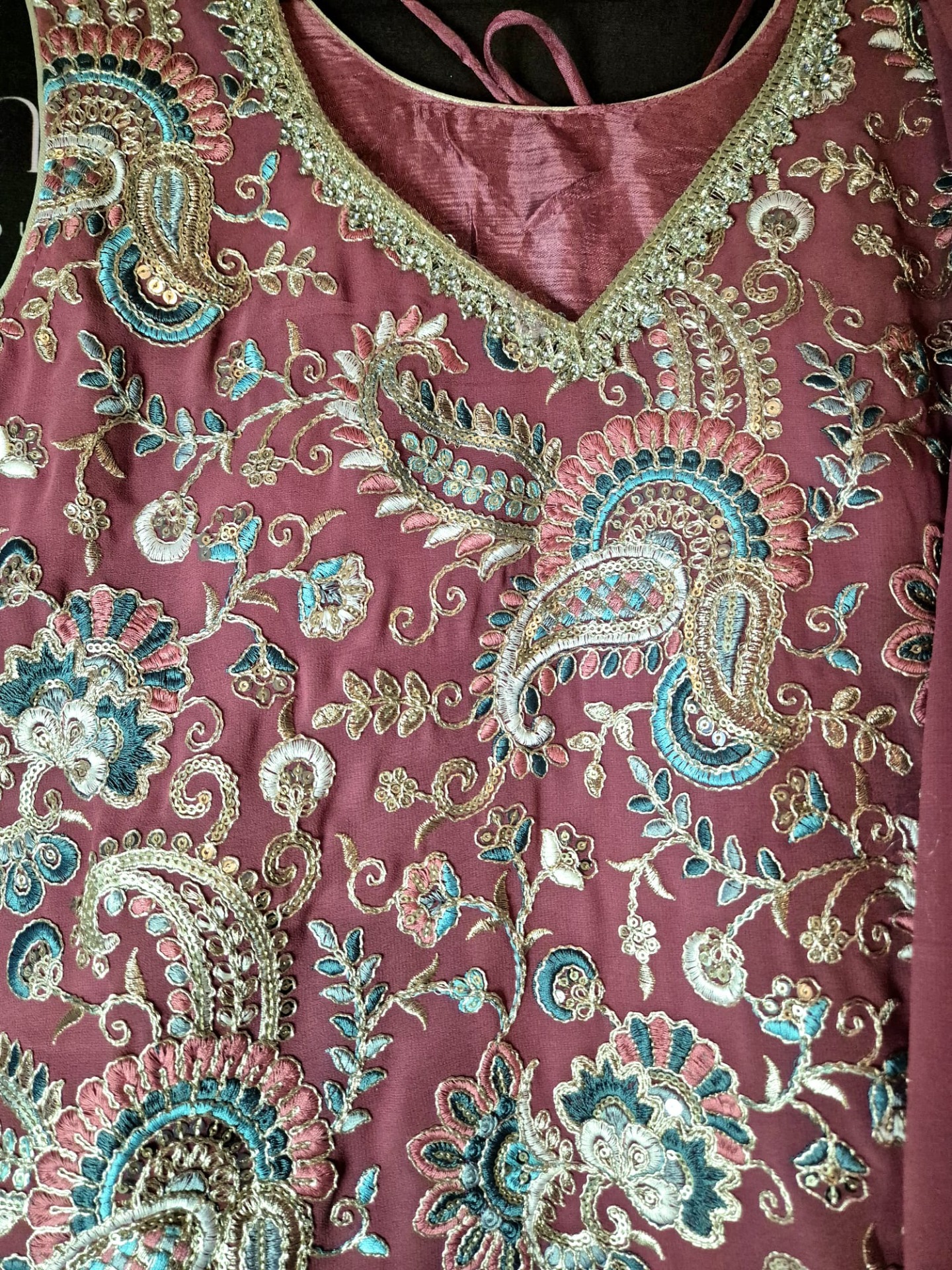 Embroidery: The top is richly adorned with intricate embroidery featuring paisley and floral motifs in turquoise, silver, and soft pastel tones. The neckline is elegantly finished with silver embroidery and subtle shimmer details. The hemline is enhanced with delicate hanging embellishments. The dupatta is finished with a subtle silver border.